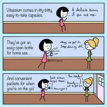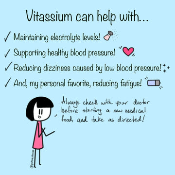 To explain Vitassium in greater detail, we collaborated with the artist PotsieSpoons to help illustrate dysautonomia and how she uses Vitassium to help manage her symptoms. We hope this comic is a helpful educational tool for you and anyone who would like to learn about Vitassium.